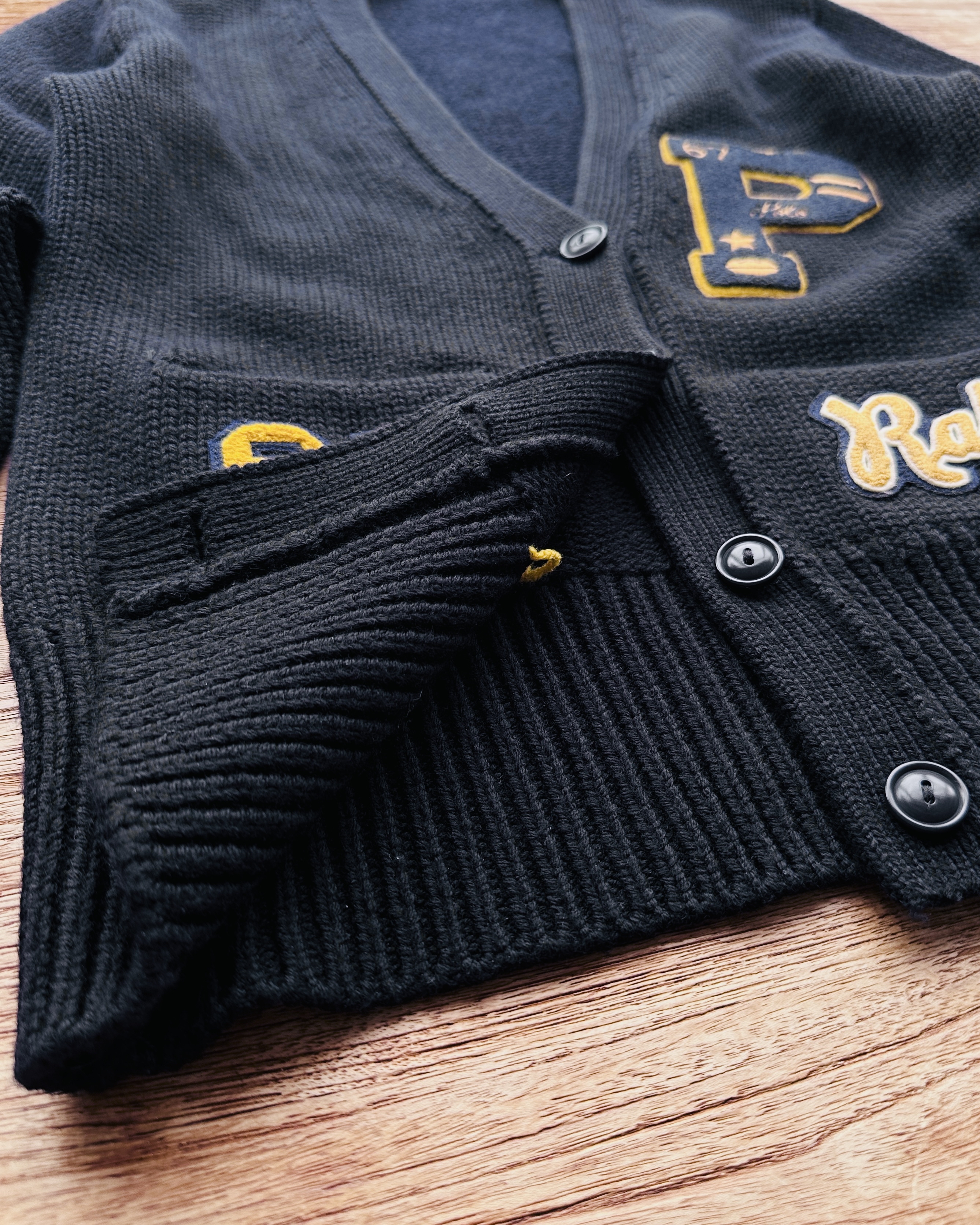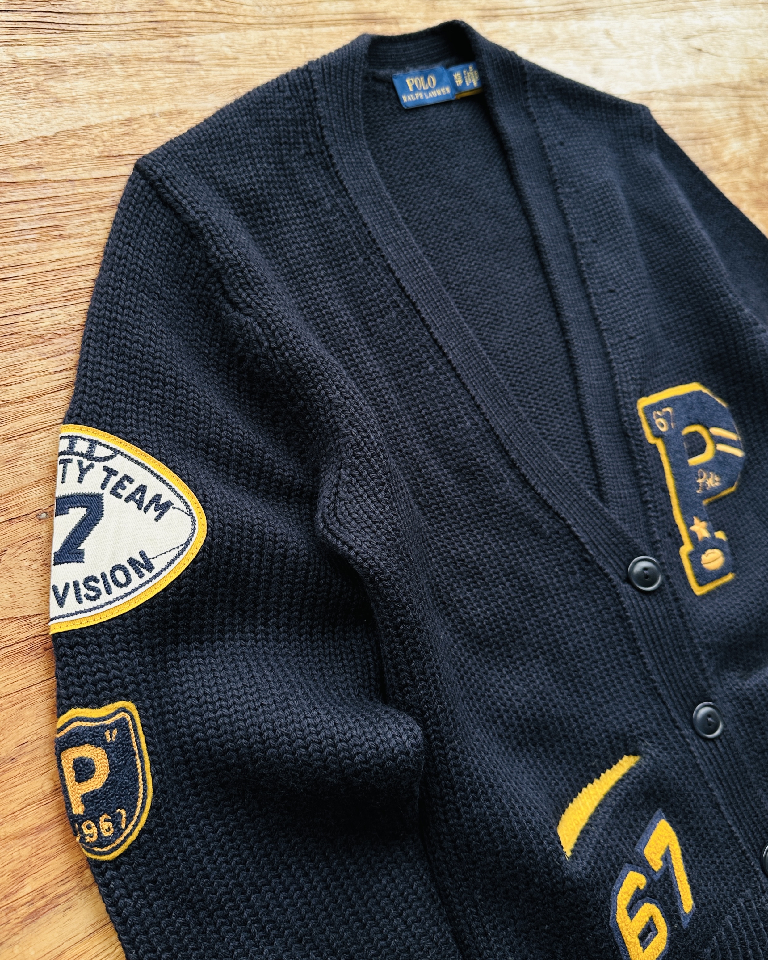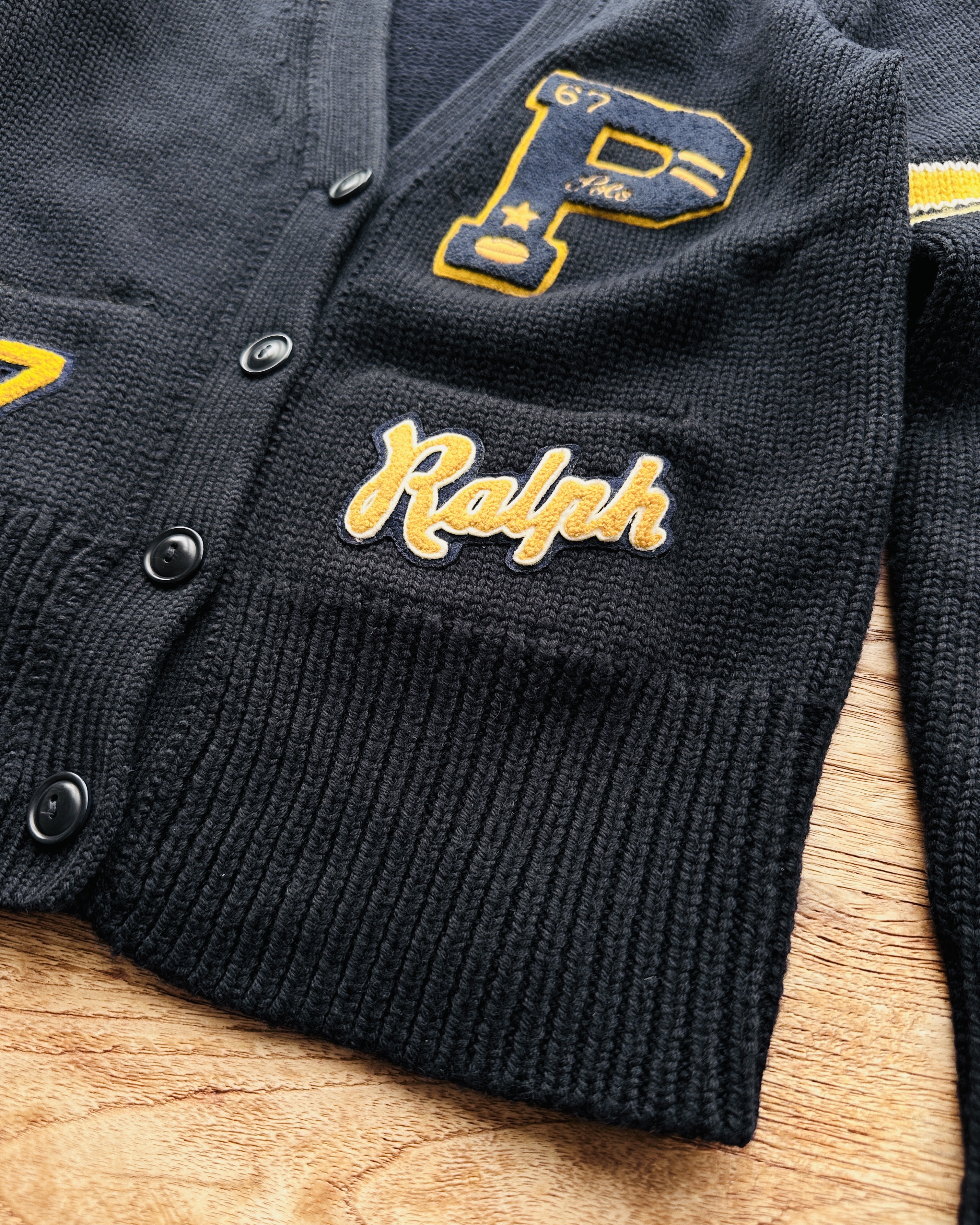 你以為呢種校園式letterman caridgan係向棒球褸致敬咩?錯啦🙅🏻♀️!所有字母章letterman設計嘅祖先都係1860’s哈佛棒球隊嘅過頭笠字母冷衫⚾️,然後再傳去美國其他長春藤尖子大學,慢慢變成開胸cardigan,再幾十年後到1930’s先真正演變成後來嘅皮袖棒球褸。講OG,冷衫版先係老佛爺🦍 價錢:HK$1,300 品牌:Polo Ralph Lauren 尺碼:XS / 155/80A 尺寸:38cm (肩)|88cm (胸-buttoned)|80cm (腰-buttoned)|57cm (袖)|58cm (長) 註:85%新|100% wool *二手產品難達全新狀態,耗損或歲月痕跡屬正常情況,較明顯/嚴重嘅問題會標明或影底,敬請見諒。 *進入付款程序後,請於10分鐘內完成付款,否則絲統會自動取消訂單。 逢星期四寄出|不設退換或退款|順豐運費到付|只寄香港不寄海外