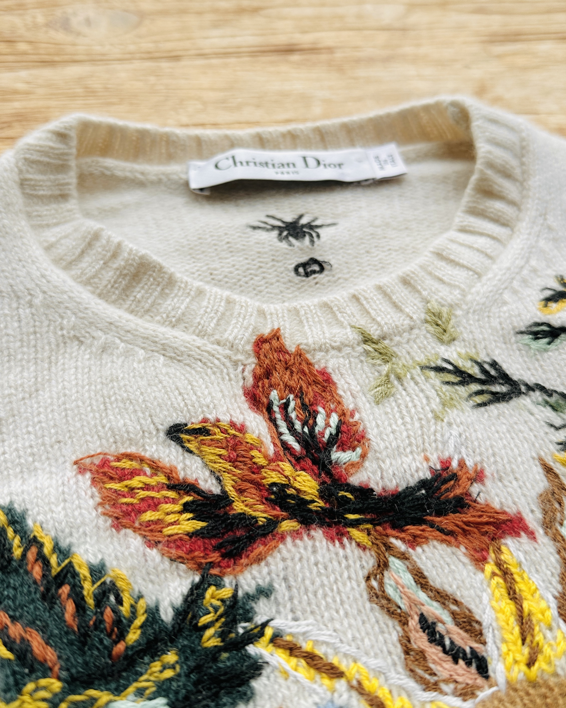 原價~HK$20K+嘅Dior刺繡cashmere top🤑。呢類刺繡knitwear 幾乎可以列入品牌嘅旗艦產品,差唔多每季都有,每次都用唔同motif向Christian Dior致敬。出邊風大雨大嘅二手市場HK$4K+㗎啦,鍾意就領養咗佢啦👩🏻🍼 價錢:HK$2,800 品牌:Dior 尺碼:FR 36 / 165/84A / S 尺寸:37cm (肩)|80cm (胸)|80cm (腰)|56cm (袖)|52cm (長) 註:80%新|100% cashmere|40% wool + 40% acrylic + 20% polyester|意大利製 *二手產品難達全新狀態,耗損或歲月痕跡屬正常情況,較明顯/嚴重嘅問題會標明或影底,敬請見諒。 *進入付款程序後,請於10分鐘內完成付款,否則絲統會自動取消訂單。 逢星期四寄出|不設退換或退款|順豐運費到付|只寄香港不寄海外