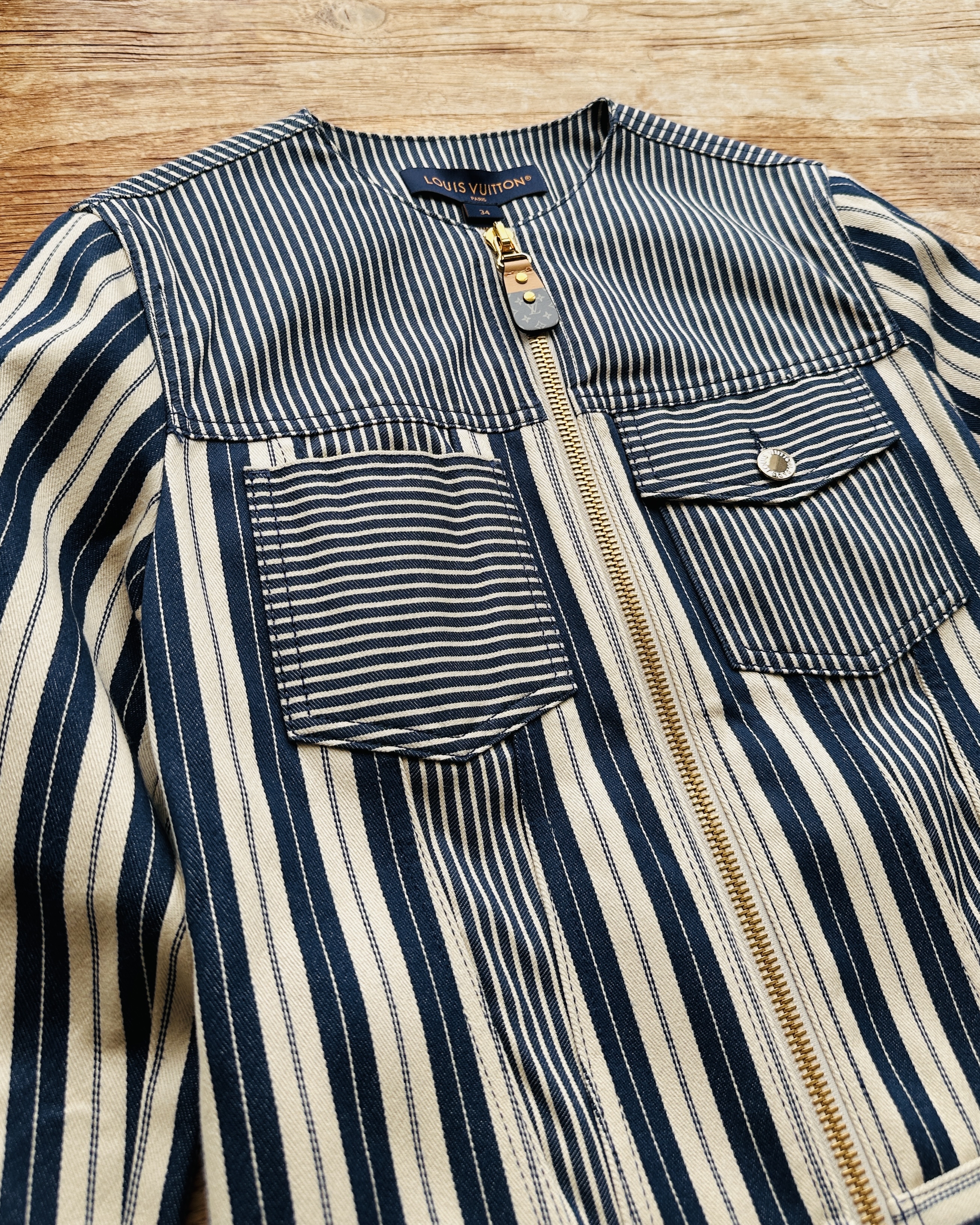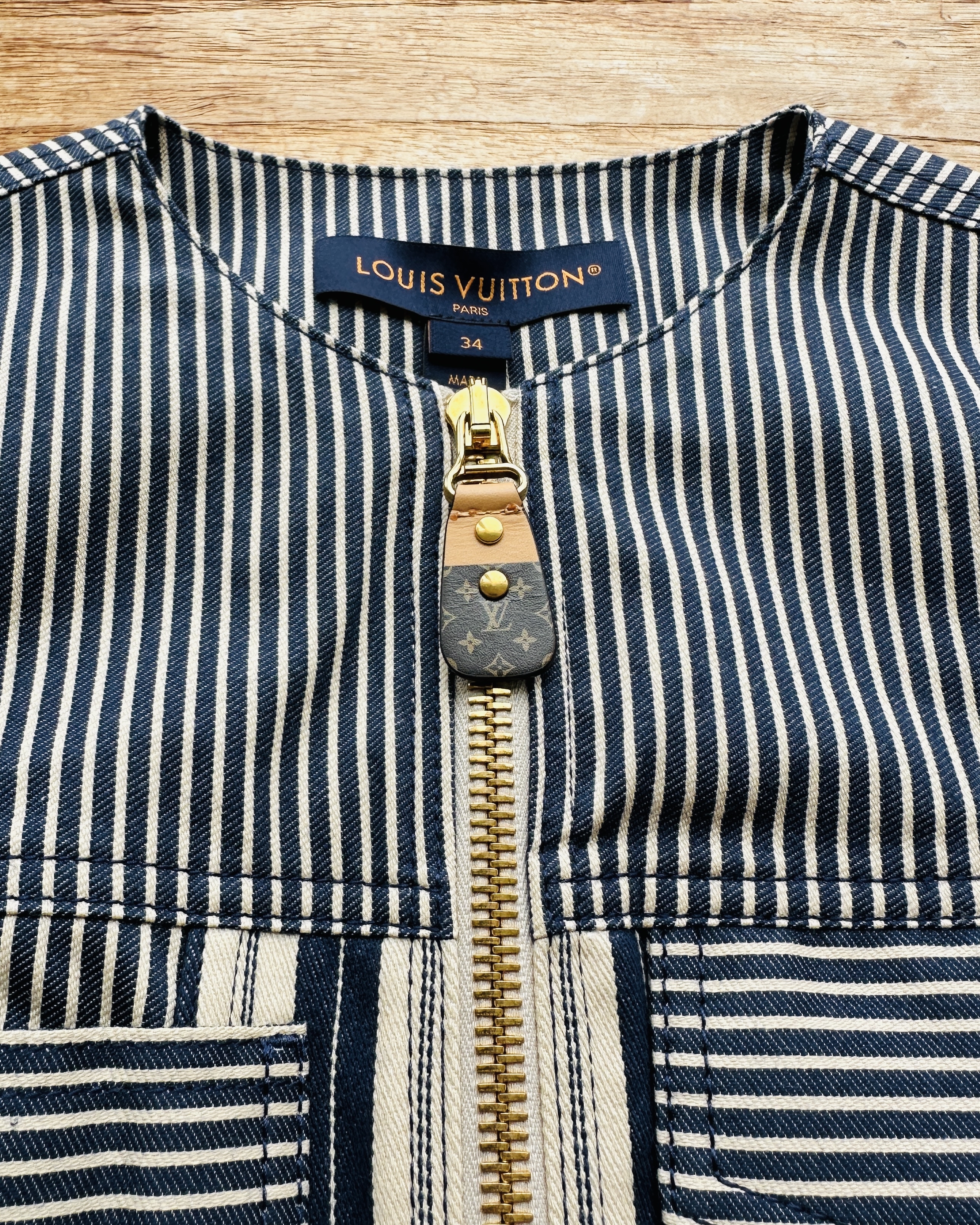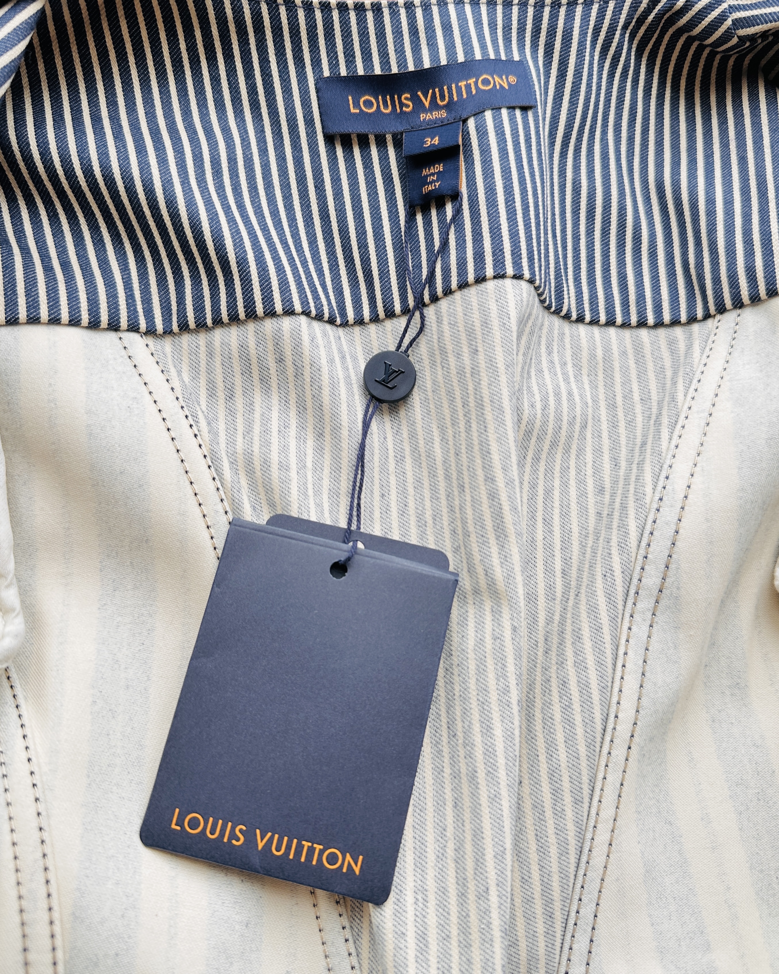 2024春夏原價HK$24,700,出面着過嘅二手價都HK$7K+,年份近嘛,不過衰妹我哋錫住你嘅👩🏻🍼 價錢:HK$4,200 品牌:Louis Vuitton 尺碼:FR 34 / 155/80A / XS 尺寸:37cm (肩)|84cm (胸-zipped)|84cm (腰-zipped)|51cm (袖)|58cm (長) 註:全新未剪牌|100% cotton|100% cow leather|意大利製 *二手產品難達全新狀態,耗損或歲月痕跡屬正常情況,較明顯/嚴重嘅問題會標明或影底,敬請見諒。 *進入付款程序後,請於10分鐘內完成付款,否則絲統會自動取消訂單。 逢星期四寄出|不設退換或退款|順豐運費到付|只寄香港不寄海外