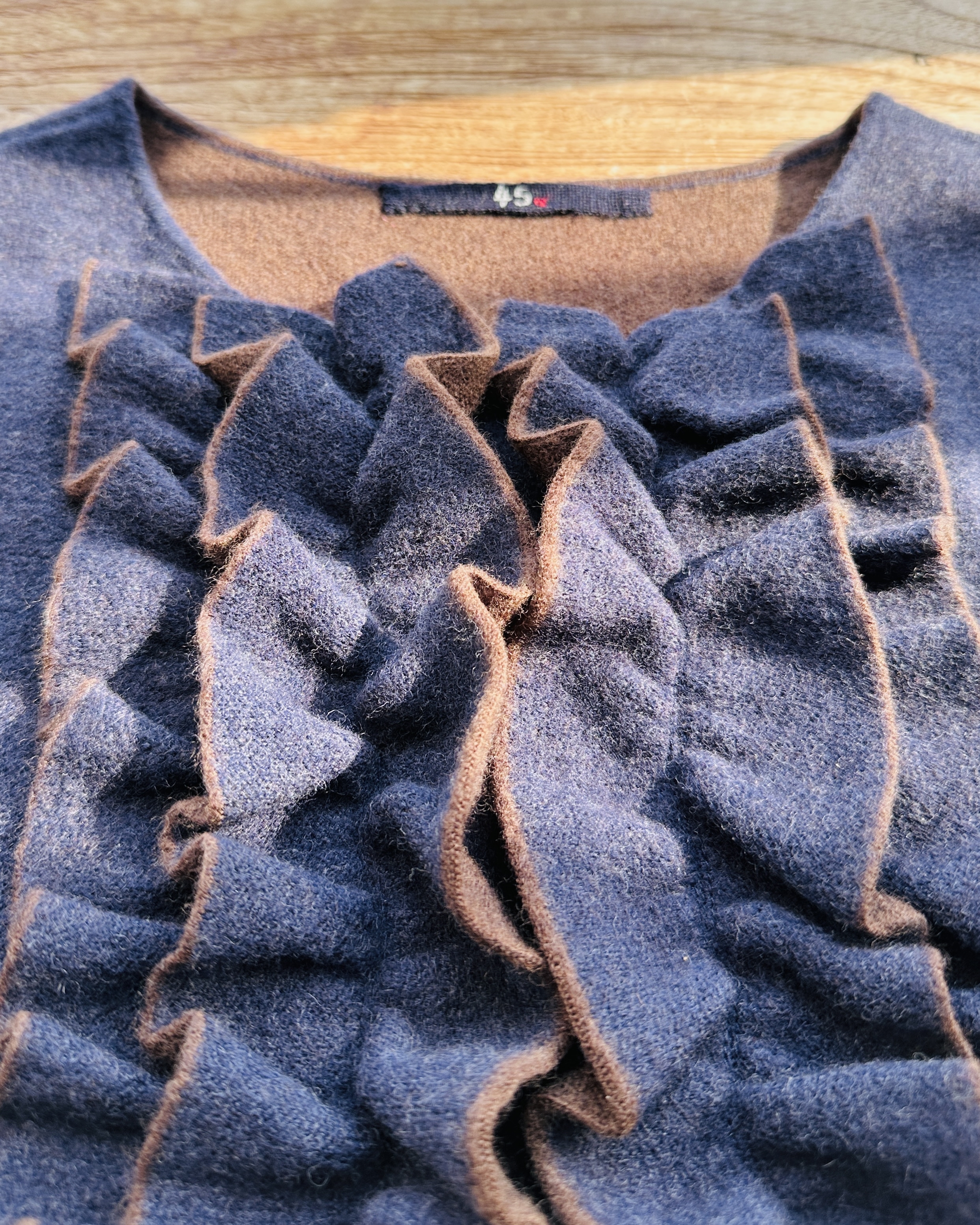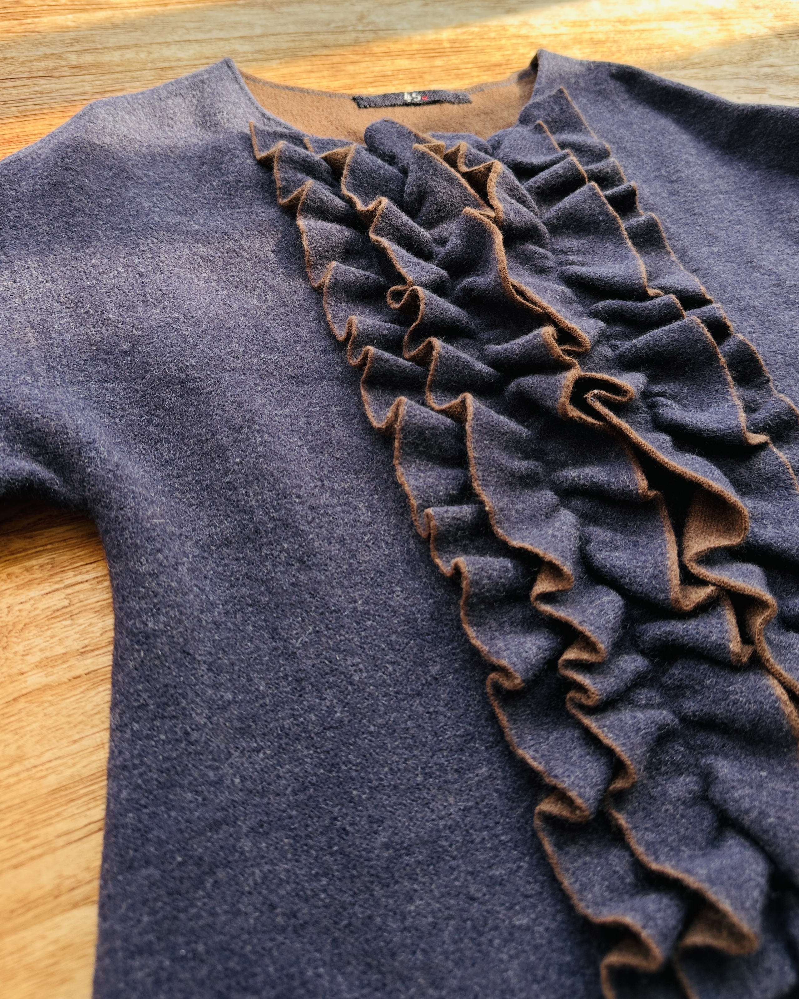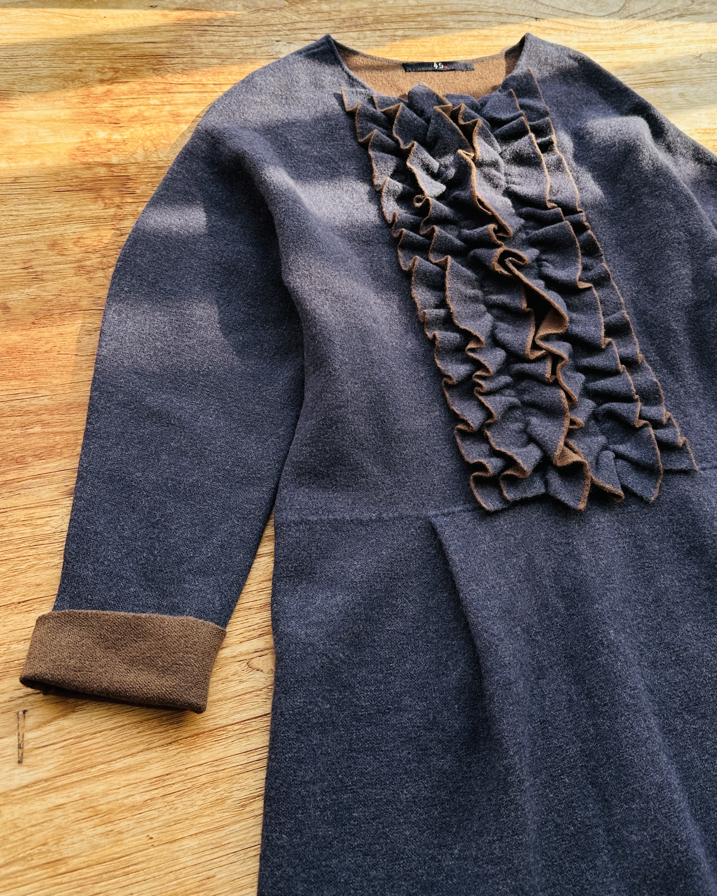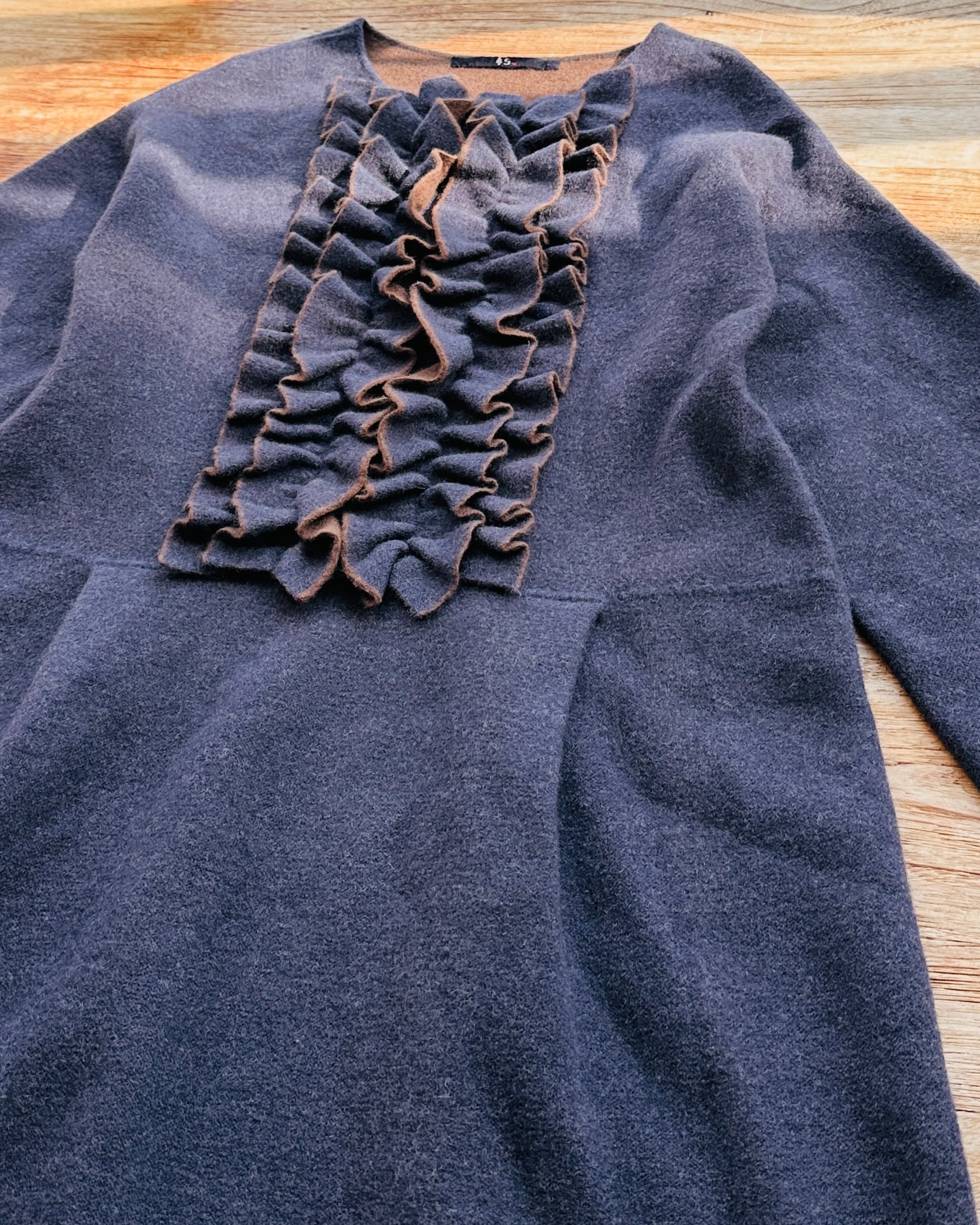 每次經過海港城45R都會俾佢吸咗入去,貴到唔捨得買都要睇吓摸吓問吓,因為啲日本傳統indigo藍染工藝實在太靚🎏。呢件ruffled wool dress原價點都要HK$5/6/7K,值嘅🦥 價錢:HK$1,500 品牌:45R 尺碼:0 / XS 尺寸:50cm (drop shoulder)|88cm (胸)|86cm (腰)|100cm+ (臀)|47cm (袖)|110cm (長) 註:85%新|90% wool + 8% nylon + 2% polyurethane *二手產品難達全新狀態,耗損或歲月痕跡屬正常情況,較明顯/嚴重嘅問題會標明或影底,敬請見諒。 *進入付款程序後,請於10分鐘內完成付款,否則絲統會自動取消訂單。 逢星期四寄出|不設退換或退款|順豐運費到付|只寄香港不寄海外
