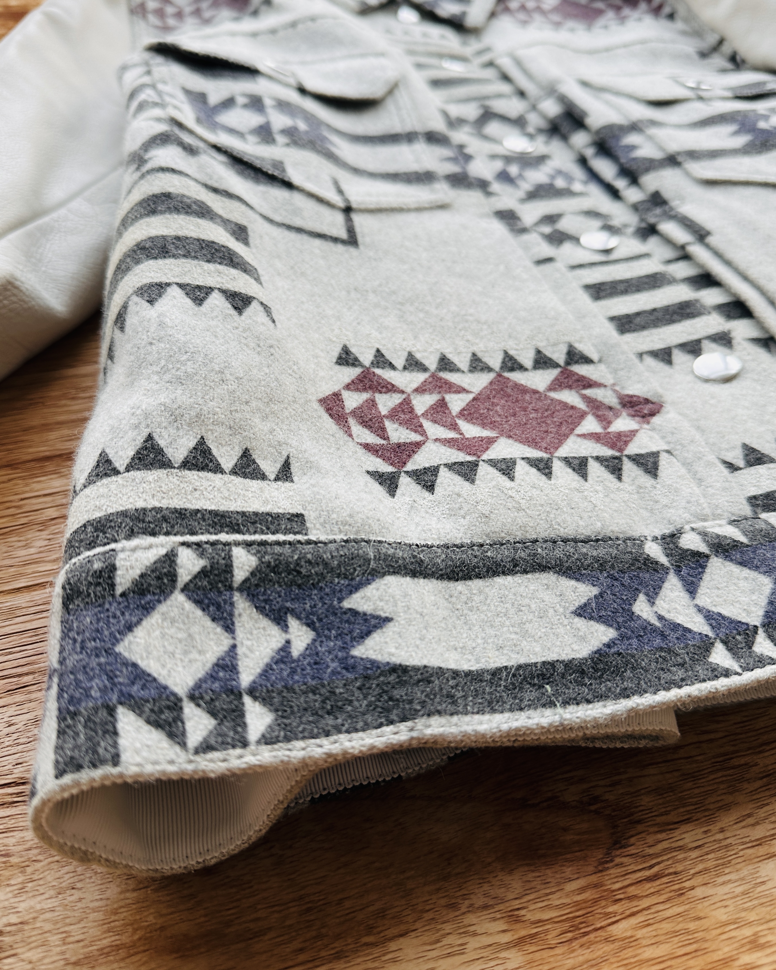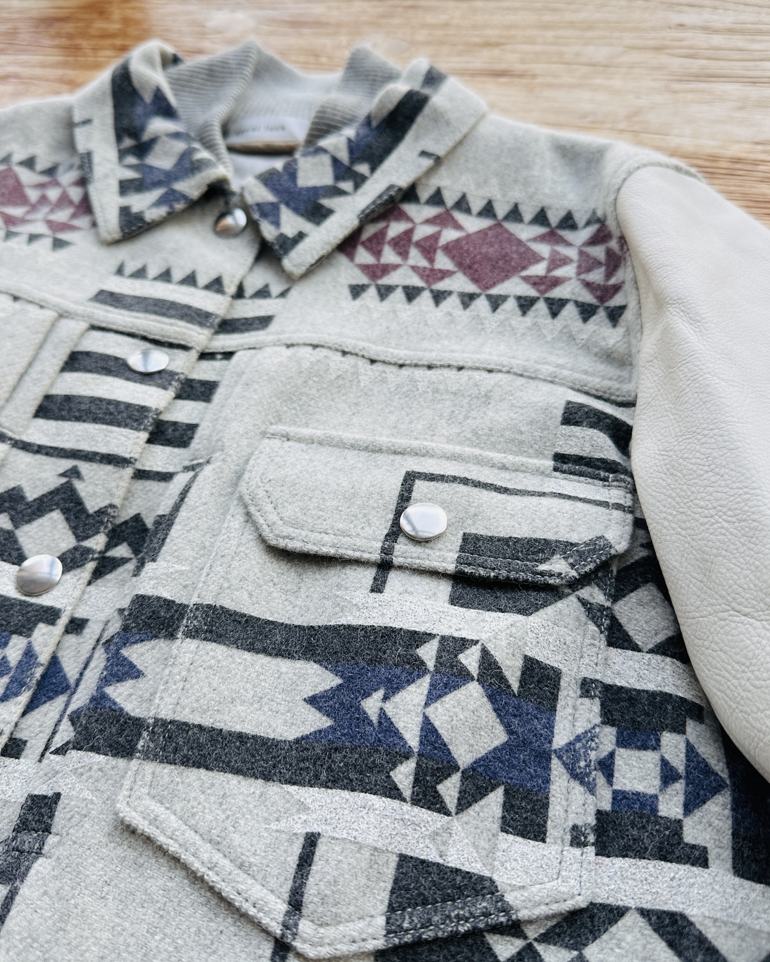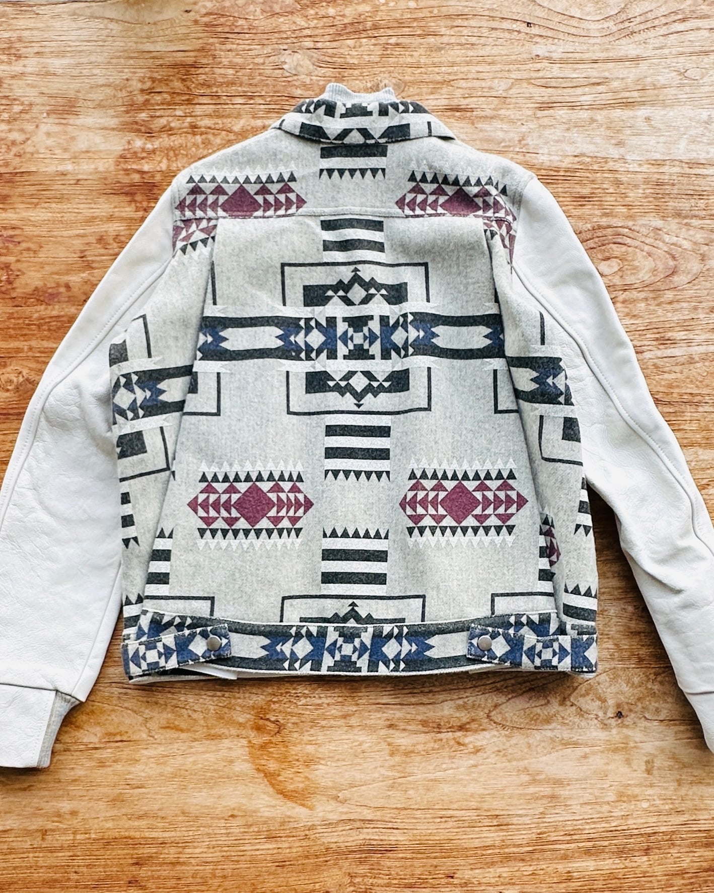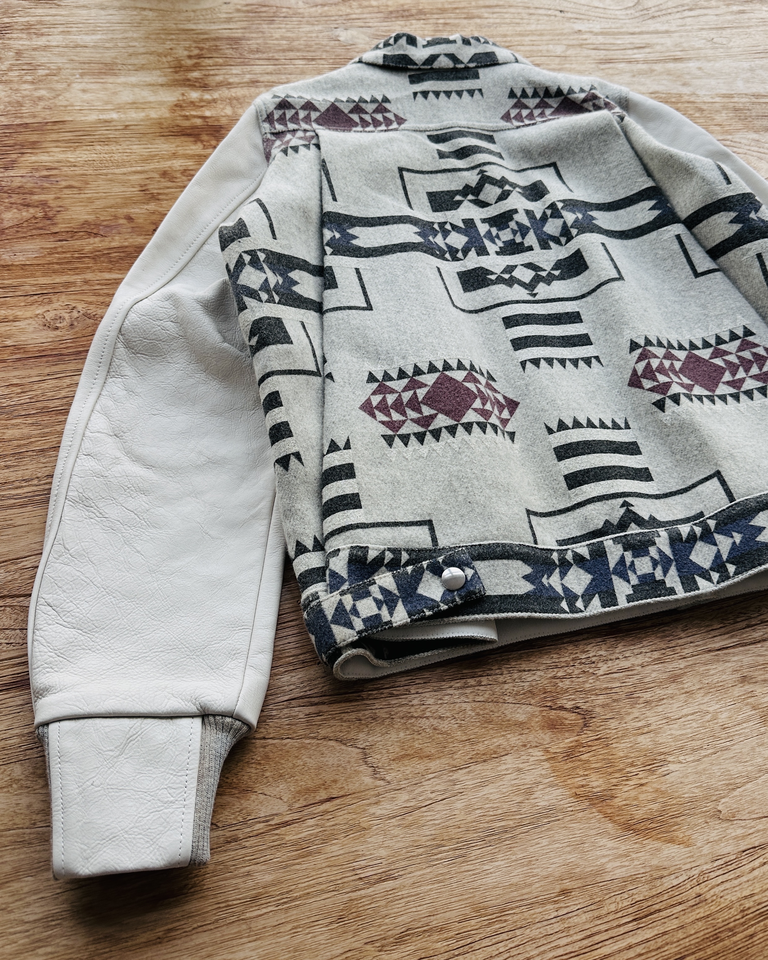10幾年前Sacai春秋兩季都會以Sacai Luck命名,貌似副線其實又唔算係。呢件2014 pre-fall嘅,好易以為聯乘Pendleton,不過呢兩個單位真正合作要等多5年,呢件純粹要嚟熱吓身🤟🏼。留意衫領同袖口灰色布隨年月有啲變色,不過真身唔算起眼,衫身一啲事都冇🧚🏼♀️ 價錢:HK$750 品牌:Sacai Luck 尺碼:3 / M-L 尺寸:40cm (肩)|108cm (胸-buttoned)|108cm (腰-buttoned)|62cm (袖)|58cm (長) 註:80%新|放耐咗袖口、衫領及內裡布起漬,但唔影響衫身|100% wool|50% cotton + 50% polyester|100% cupro (底)|日本製 *二手產品難達全新狀態,耗損或歲月痕跡屬正常情況,較明顯/嚴重嘅問題會標明或影底,敬請見諒。 *進入付款程序後,請於10分鐘內完成付款,否則絲統會自動取消訂單。 逢星期四寄出|不設退換或退款|順豐運費到付|只寄香港不寄海外
