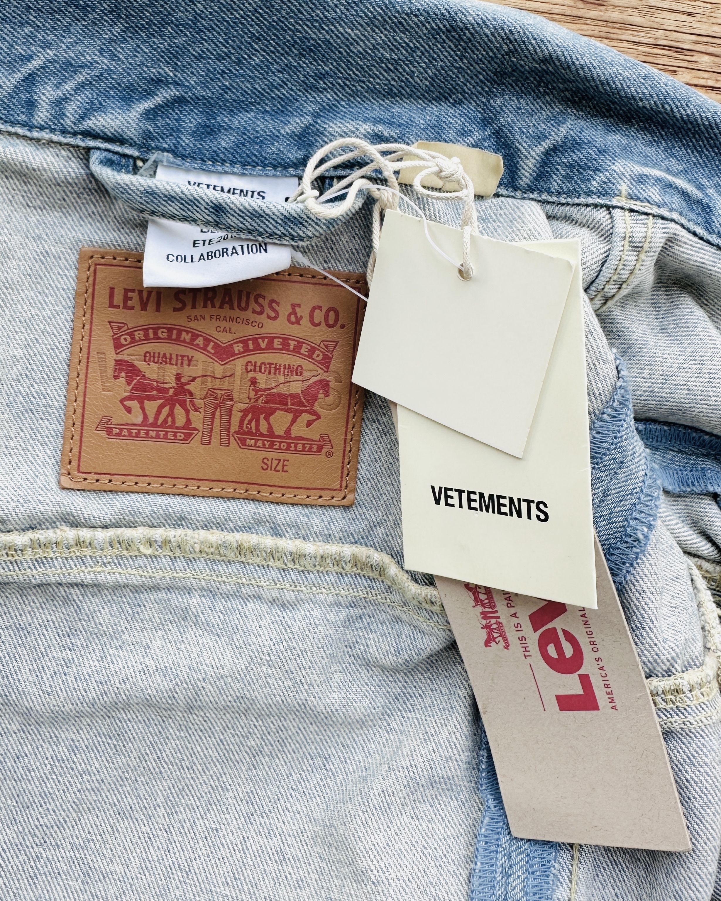 留意係Vetements x Levi’s喎,係一件衛衣都HK$8K嘅Vetements喎🫦!仲有,呢件係2018春夏Demna仲未離開Vetements,同期執掌Balenciaga嗰個時期最勁嘅Vetements喎!所以呢件解構Levi’s原價HK$13K完全唔出奇。喂Demna而家過檔埋Gucci,呢件嘢知佢咩料啦👩🏻⚖️ 價錢:HK$2,100 品牌:Vetements x Levi’s 尺碼:XS / 150/76A 尺寸:38cm (肩)|86cm (胸-buttoned)|82cm (腰-buttoned)|57cm (袖)|54cm (長) 註:全新未剪牌|100% cotton|土耳其製 *二手產品難達全新狀態,耗損或歲月痕跡屬正常情況,較明顯/嚴重嘅問題會標明或影底,敬請見諒。 *進入付款程序後,請於10分鐘內完成付款,否則絲統會自動取消訂單。 逢星期四寄出|不設退換或退款|順豐運費到付|只寄香港不寄海外