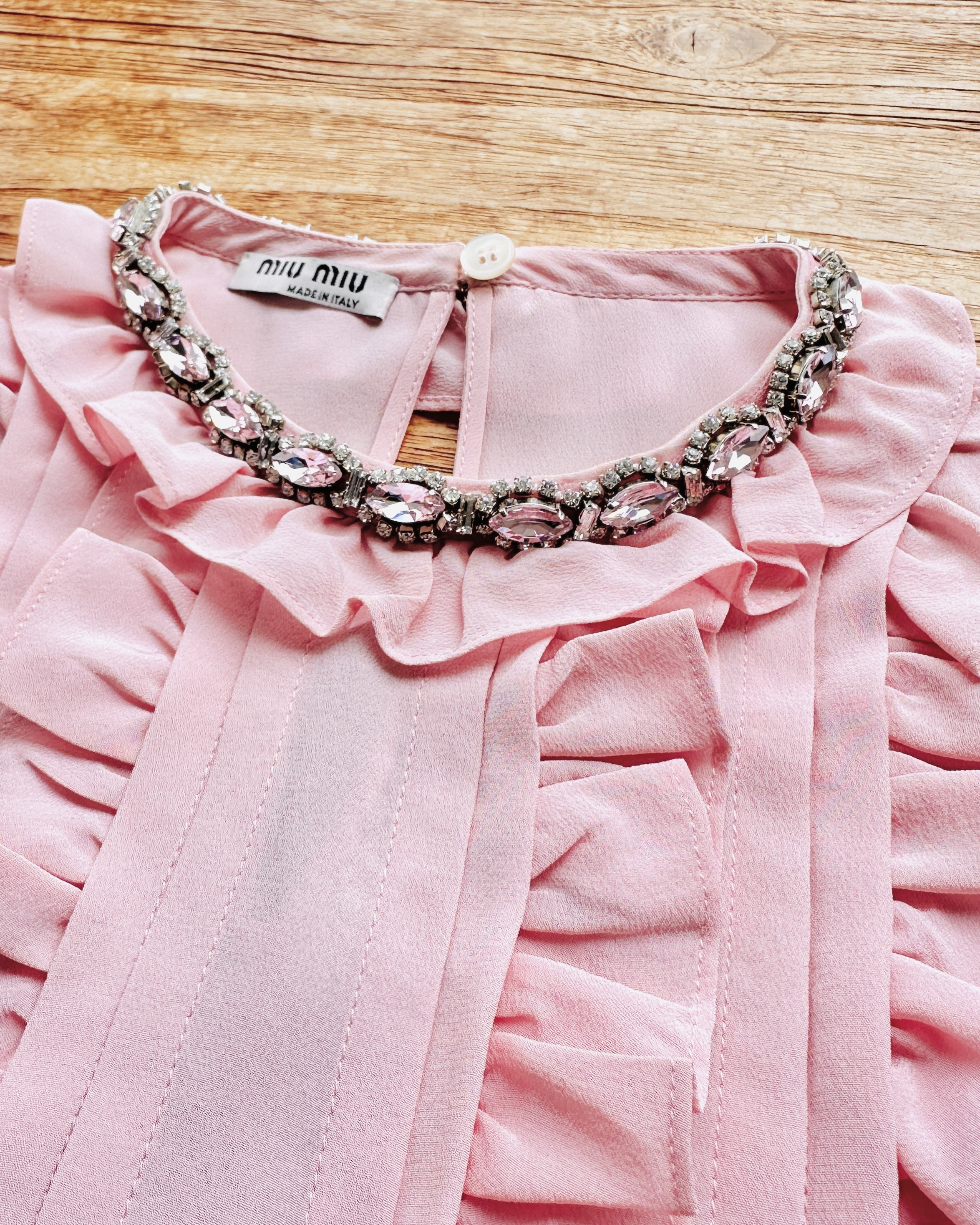 見到條領去得咁盡,唔係Prada就miu miu㗎啦🧜🏼♀️。今次係2021春夏季嘅,全絲,原價HK$16,600,基本啦💅🏻 價錢:HK$1,500 品牌:miu miu 尺碼:38 / 165/76A / S 尺寸:35cm (肩)|92cm (胸)|92cm (腰)|55cm (長) 註:88%新|腋下淡漬|100% silk|意大製 *二手產品難達全新狀態,耗損或歲月痕跡屬正常情況,較明顯/嚴重嘅問題會標明或影底,敬請見諒。 *進入付款程序後,請於10分鐘內完成付款,否則絲統會自動取消訂單。 逢星期四寄出|不設退換或退款|順豐運費到付|只寄香港不寄海外