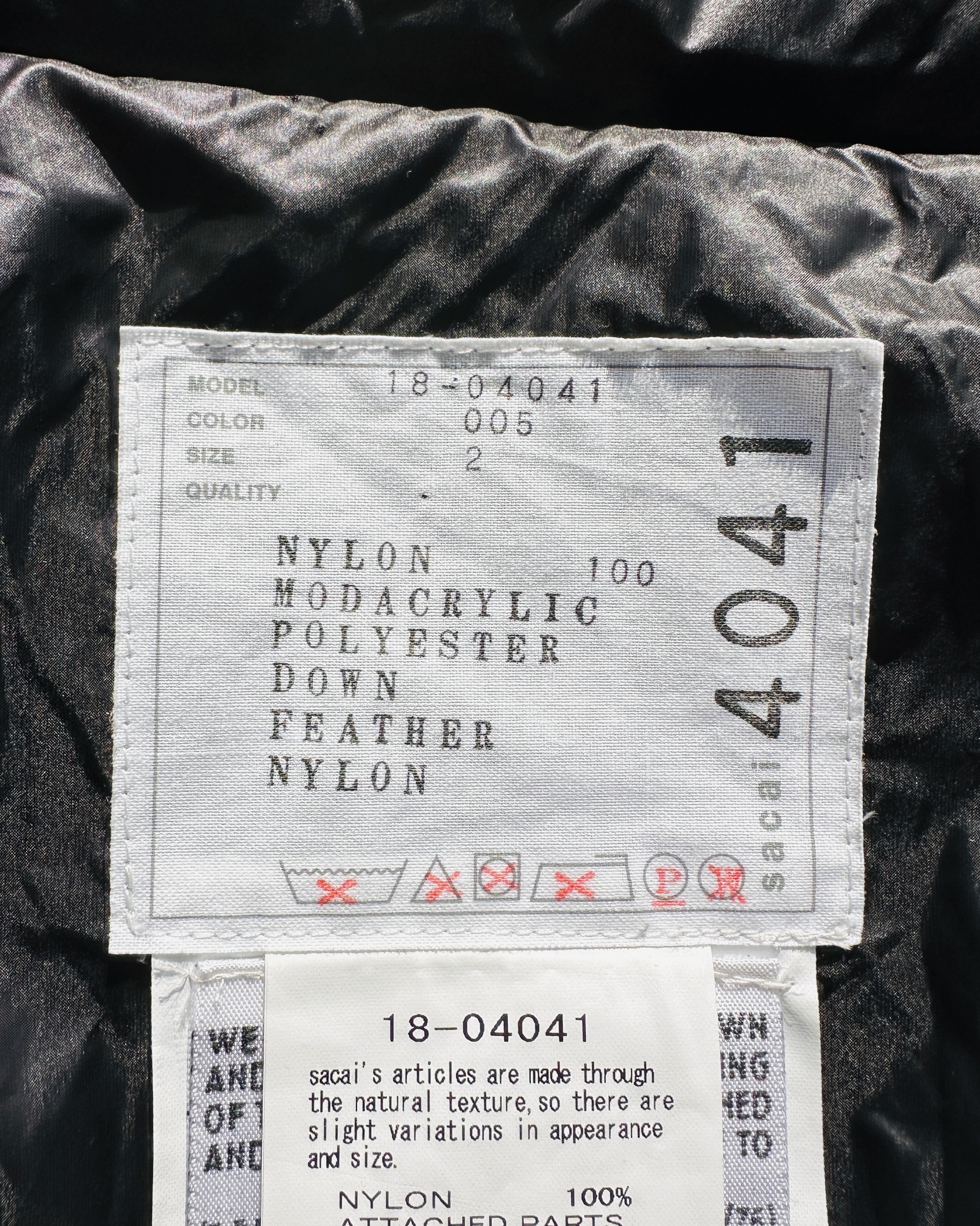 喂Uniqlo最貴嗰件羽絨都HK$799啦,Sacai喎!未着過!係咪抵玩先🧞♀️ 價錢:HK$2,600 品牌:Sacai 尺碼:2 / M 尺寸:47cm (肩)|102cm (胸-zipped)|102cm (腰-zipped)|61cm (袖)|58cm (長) 註:全新未使用|100% nylon|100% modacrylic|100% polyester|90% down + 10% feather (filling) *二手產品難達全新狀態,耗損或歲月痕跡屬正常情況,較明顯/嚴重嘅問題會標明或影底,敬請見諒。 *進入付款程序後,請於10分鐘內完成付款,否則絲統會自動取消訂單。 逢星期四寄出|不設退換或退款|順豐運費到付|只寄香港不寄海外