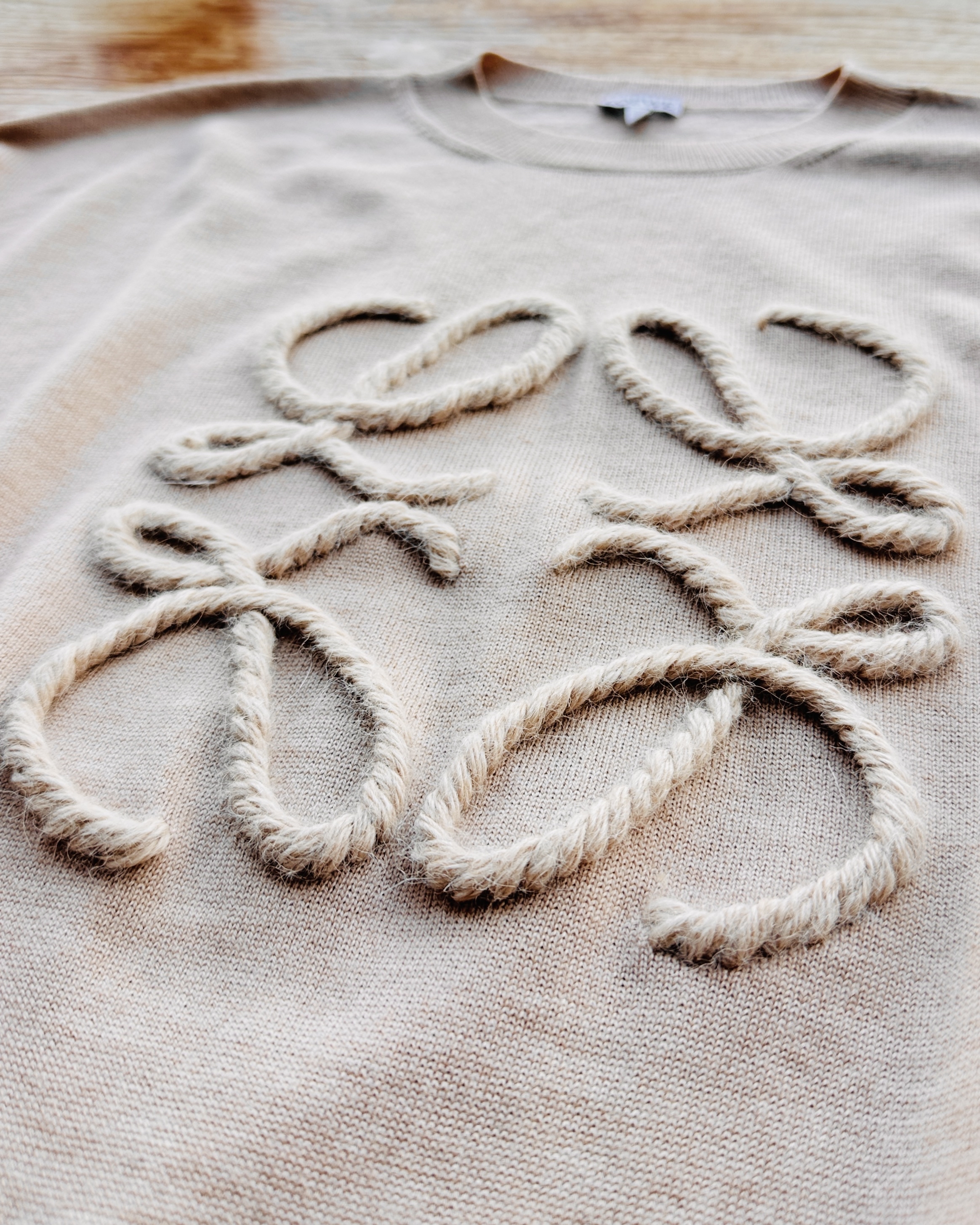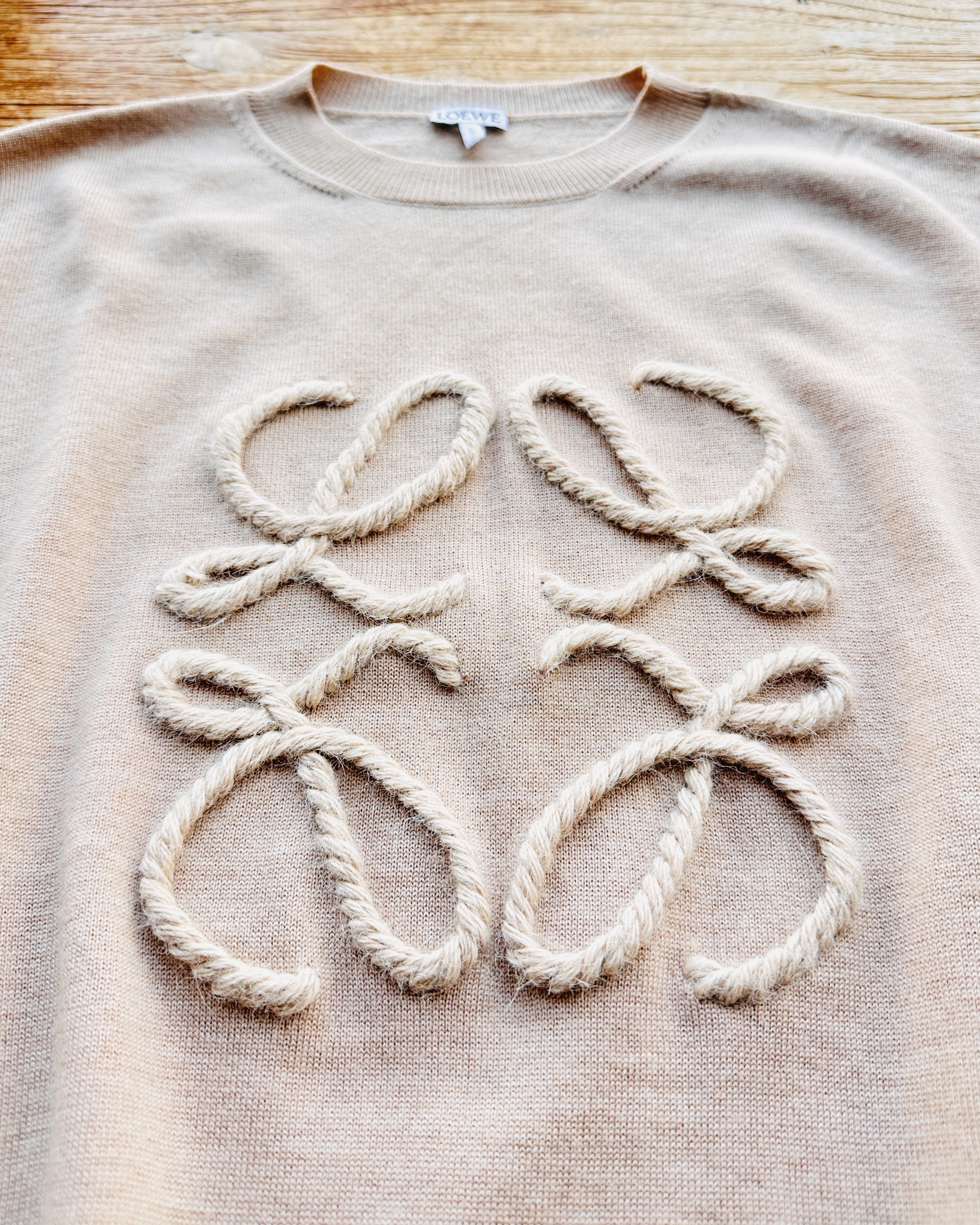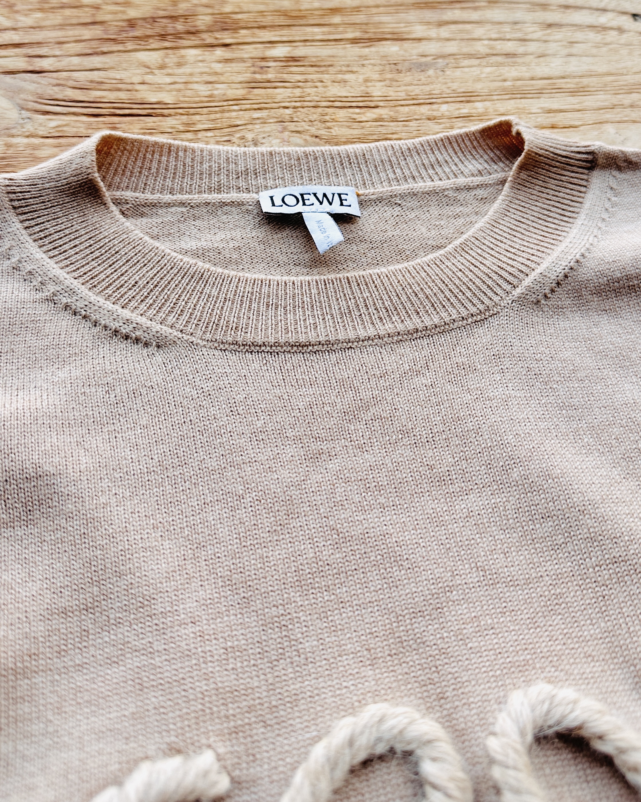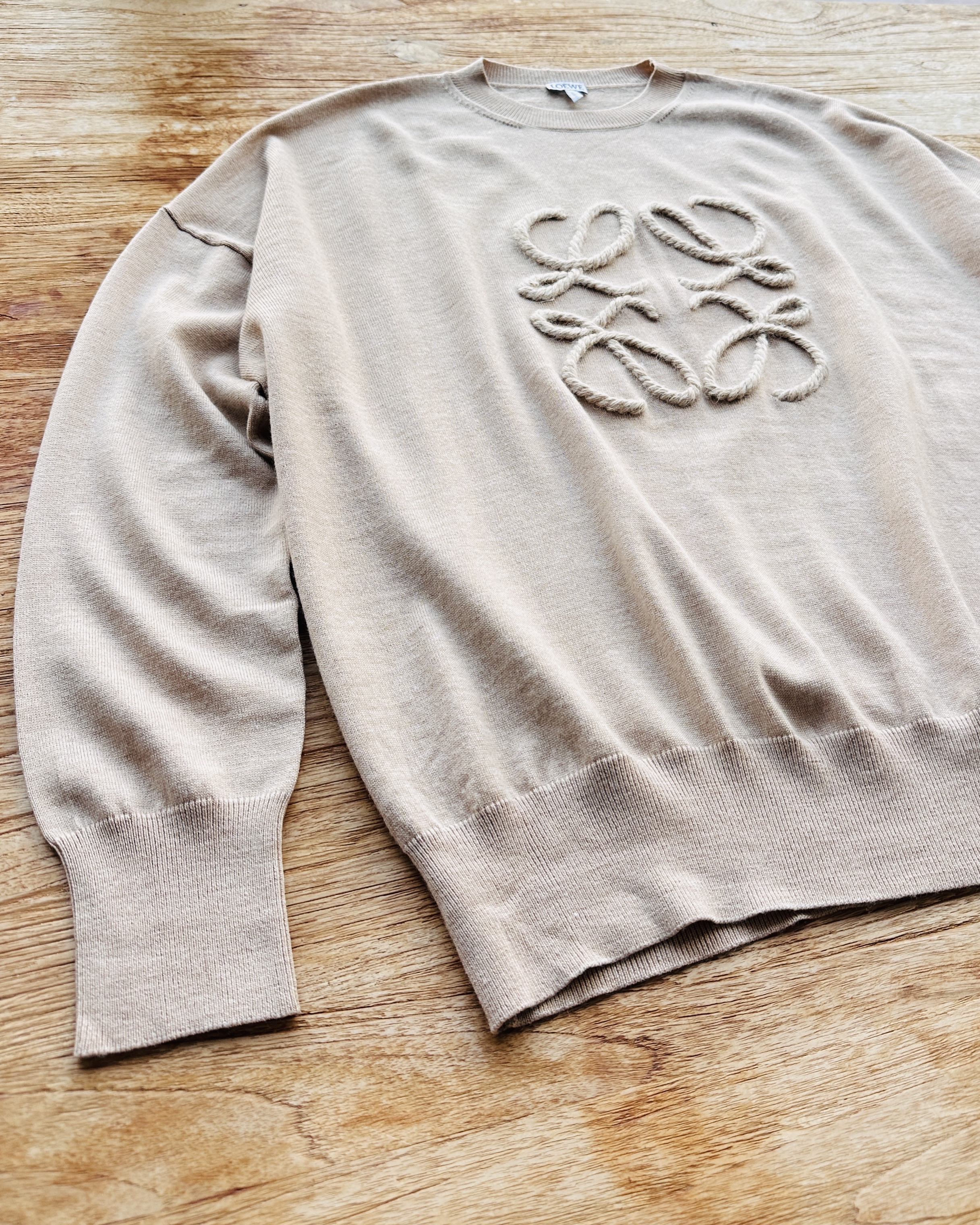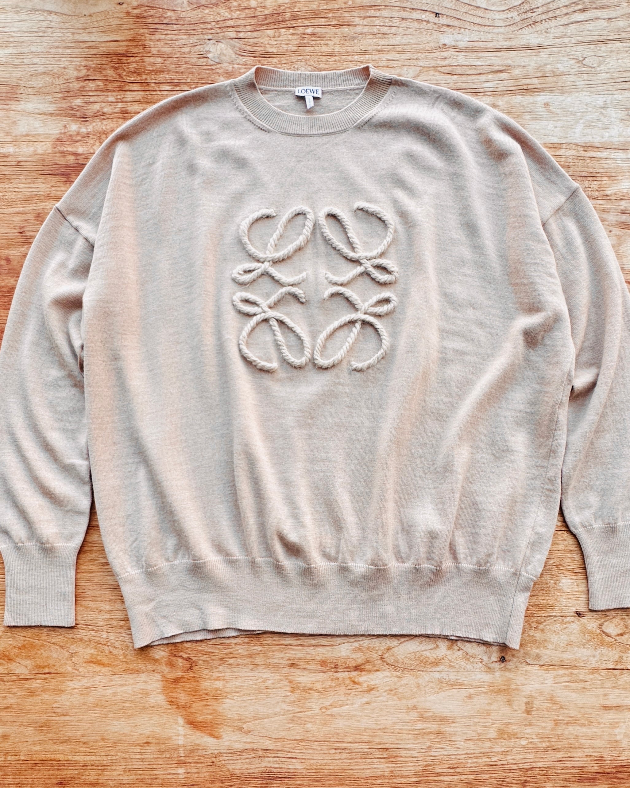 唔係咩牌子放大個logo都得㗎,好彩露way肥個anagram本身構圖靚,點玩都冇事,例如呢件2020秋冬玩繩結🪢 價錢:HK$1,700 品牌:Loewe 尺碼:S 尺寸:67cm (drop shoulder)|134cm (胸)|134cm (腰)|50cm (袖)|65cm (長) 註:85%新|99% wool + 1% elastane|意大利製 *二手產品難達全新狀態,耗損或歲月痕跡屬正常情況,較明顯/嚴重嘅問題會標明或影底,敬請見諒。 *進入付款程序後,請於10分鐘內完成付款,否則絲統會自動取消訂單。 逢星期四寄出|不設退換或退款|順豐運費到付|只寄香港不寄海外