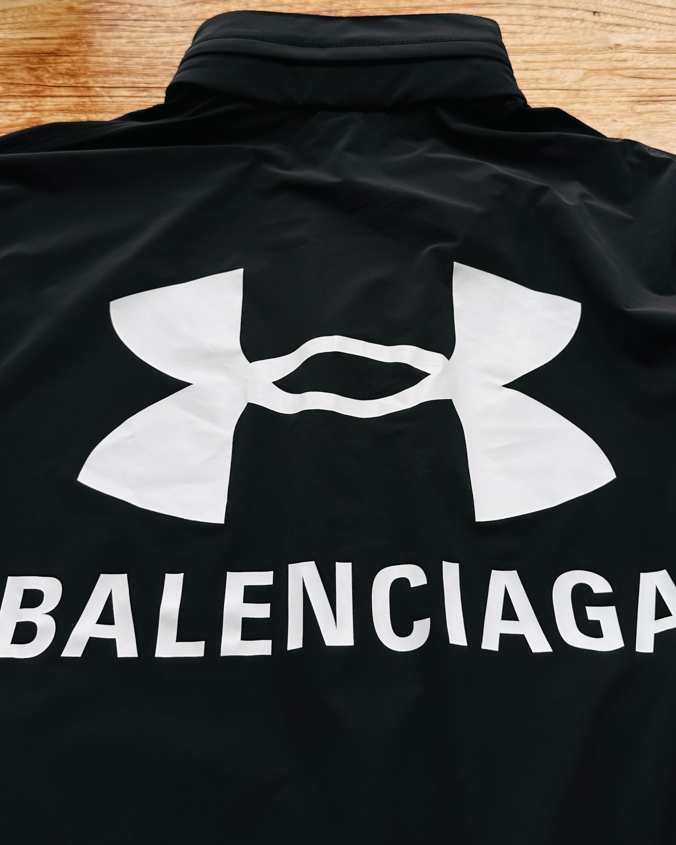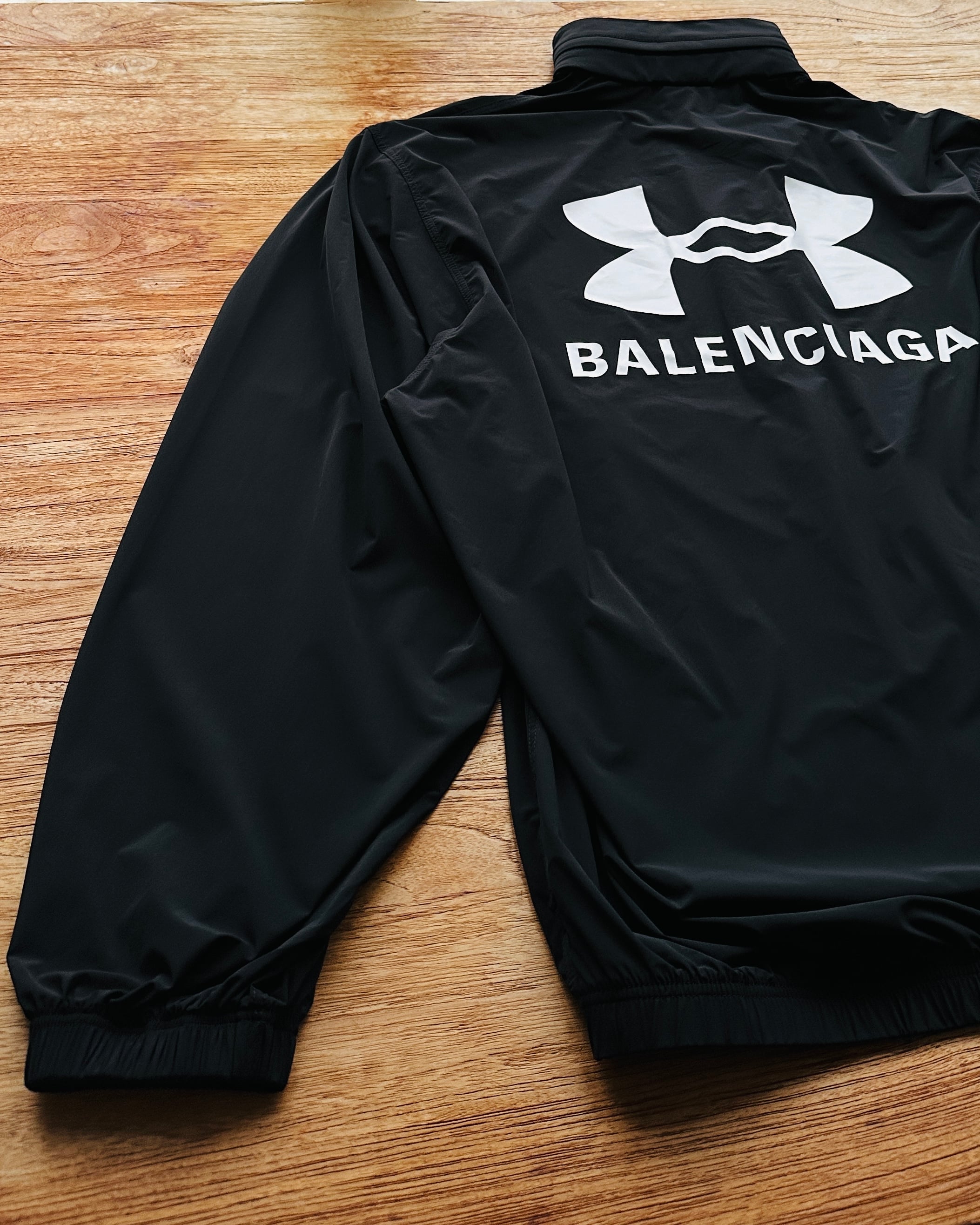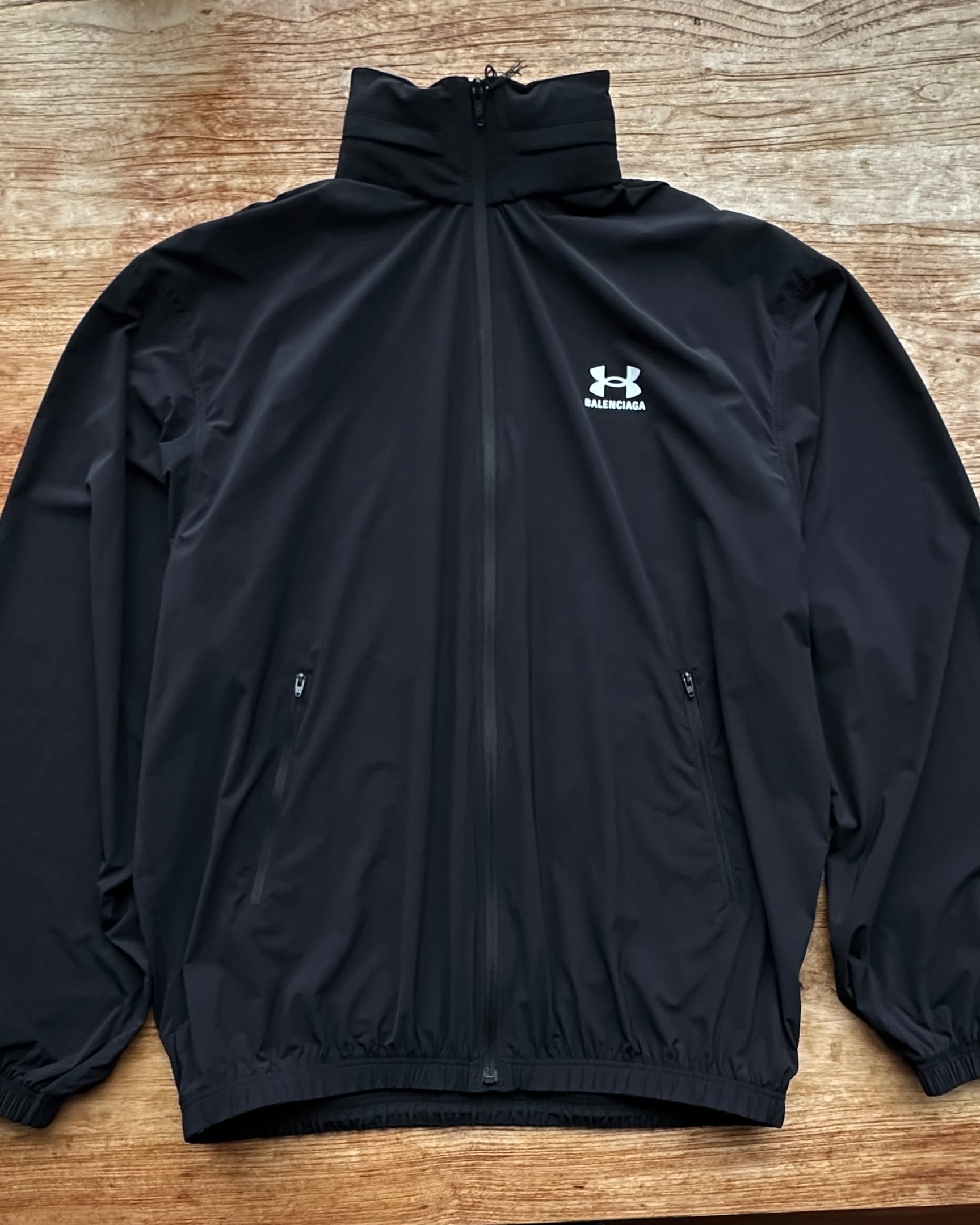 炒到上HK$16K㗎啦呢件2025春夏聯乘🙊⋯⋯原價HK$8K。好易襯㗎咋,全身oversized黑色就自動型晒㗎啦😎 價錢:HK$2,650 品牌:Balenciaga x Under Armour 尺碼:XS / 170/88A 尺寸:56cm (drop shoulder)|134cm (胸-zipped)|69cm (長) 註:全新未剪牌|85% polyamide + 15% elastane|意大利製 *二手產品難達全新狀態,耗損或歲月痕跡屬正常情況,較明顯/嚴重嘅問題會標明或影底,敬請見諒。 *進入付款程序後,請於10分鐘內完成付款,否則絲統會自動取消訂單。 逢星期四寄出|不設退換或退款|順豐運費到付|只寄香港不寄海外