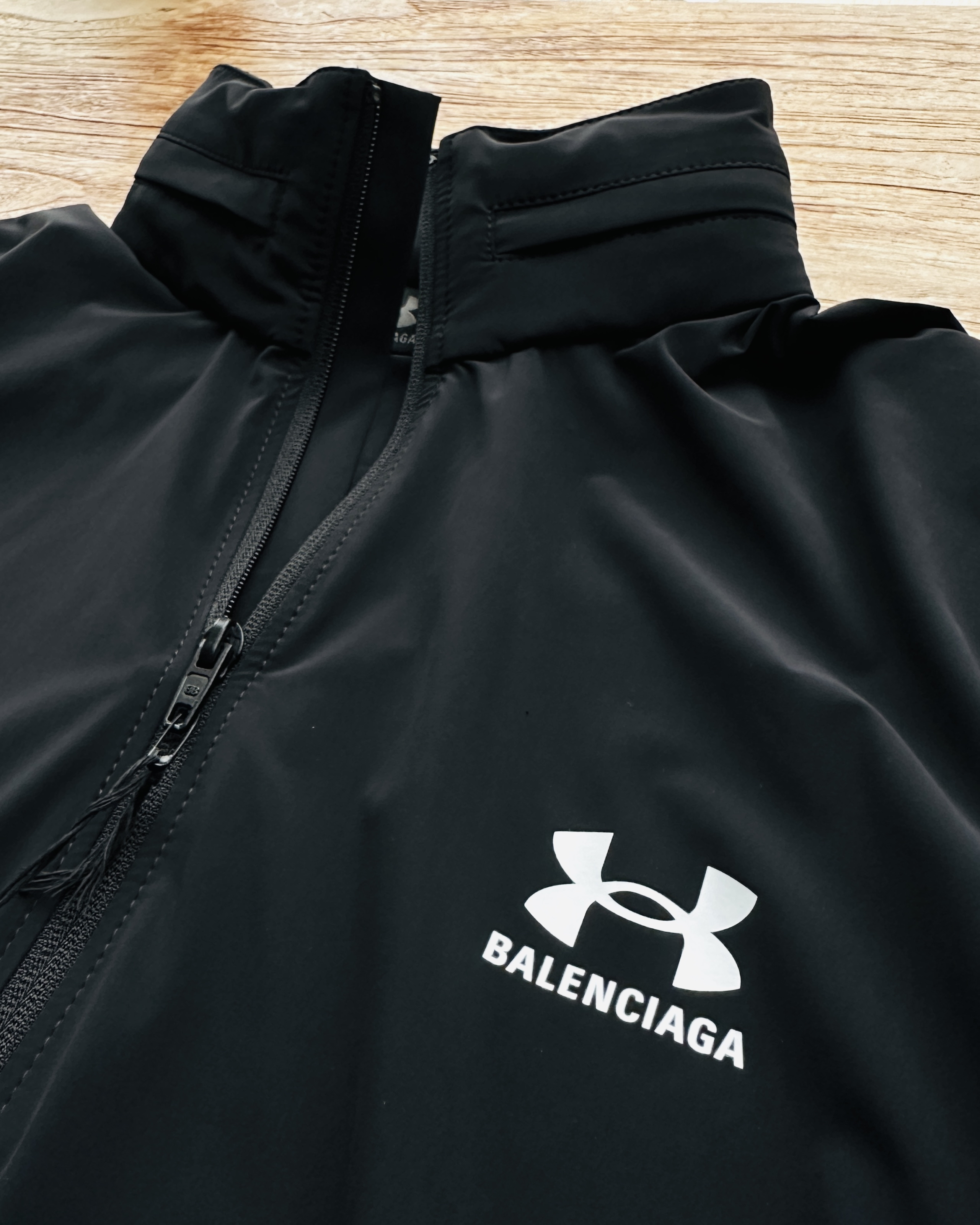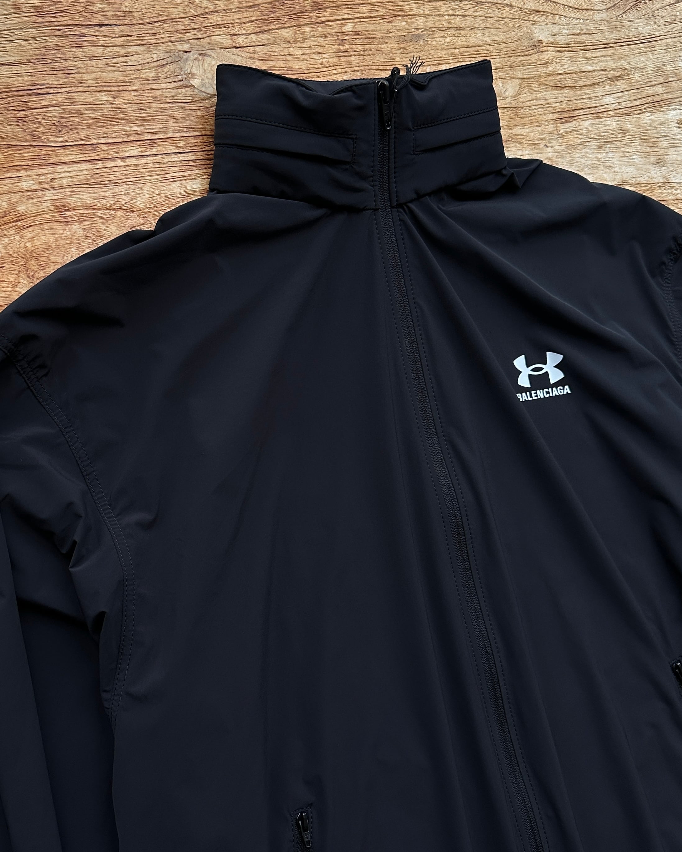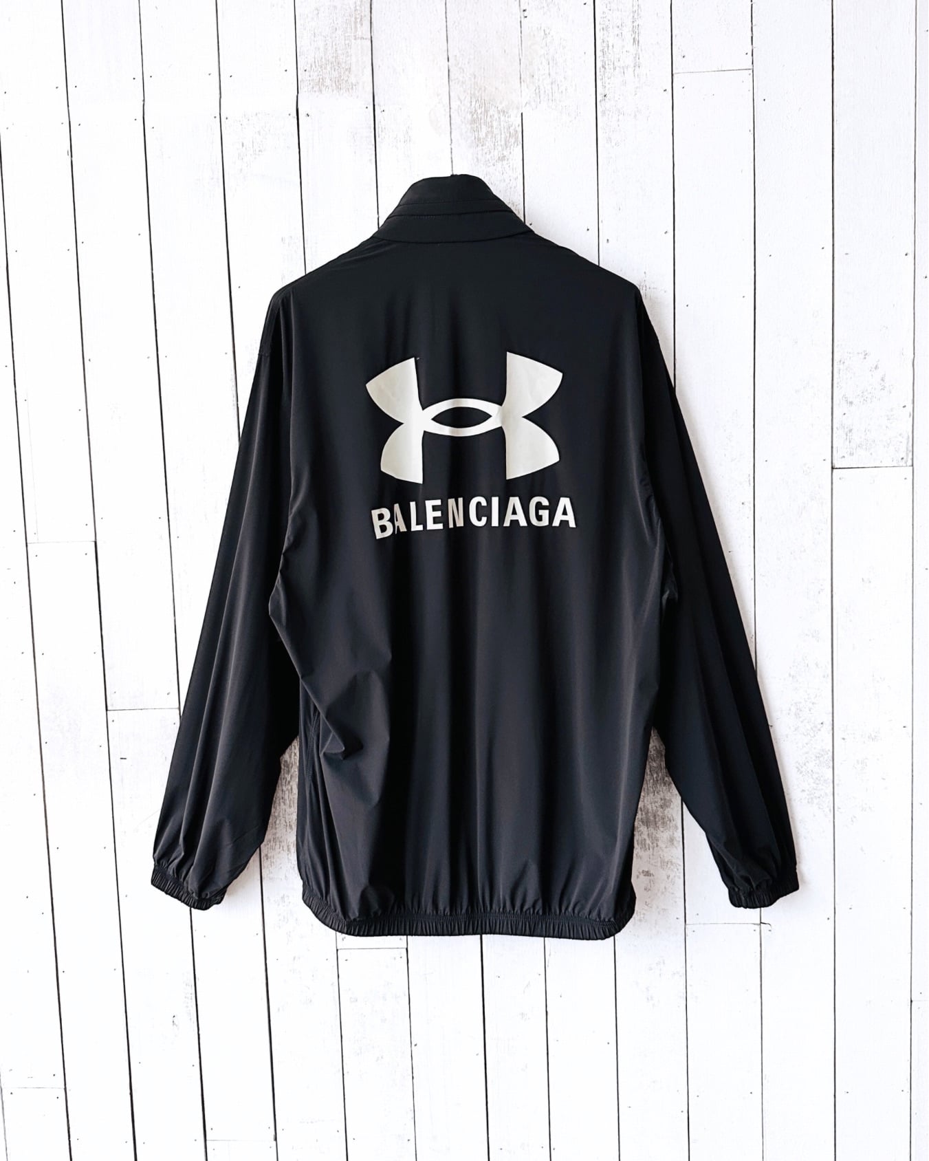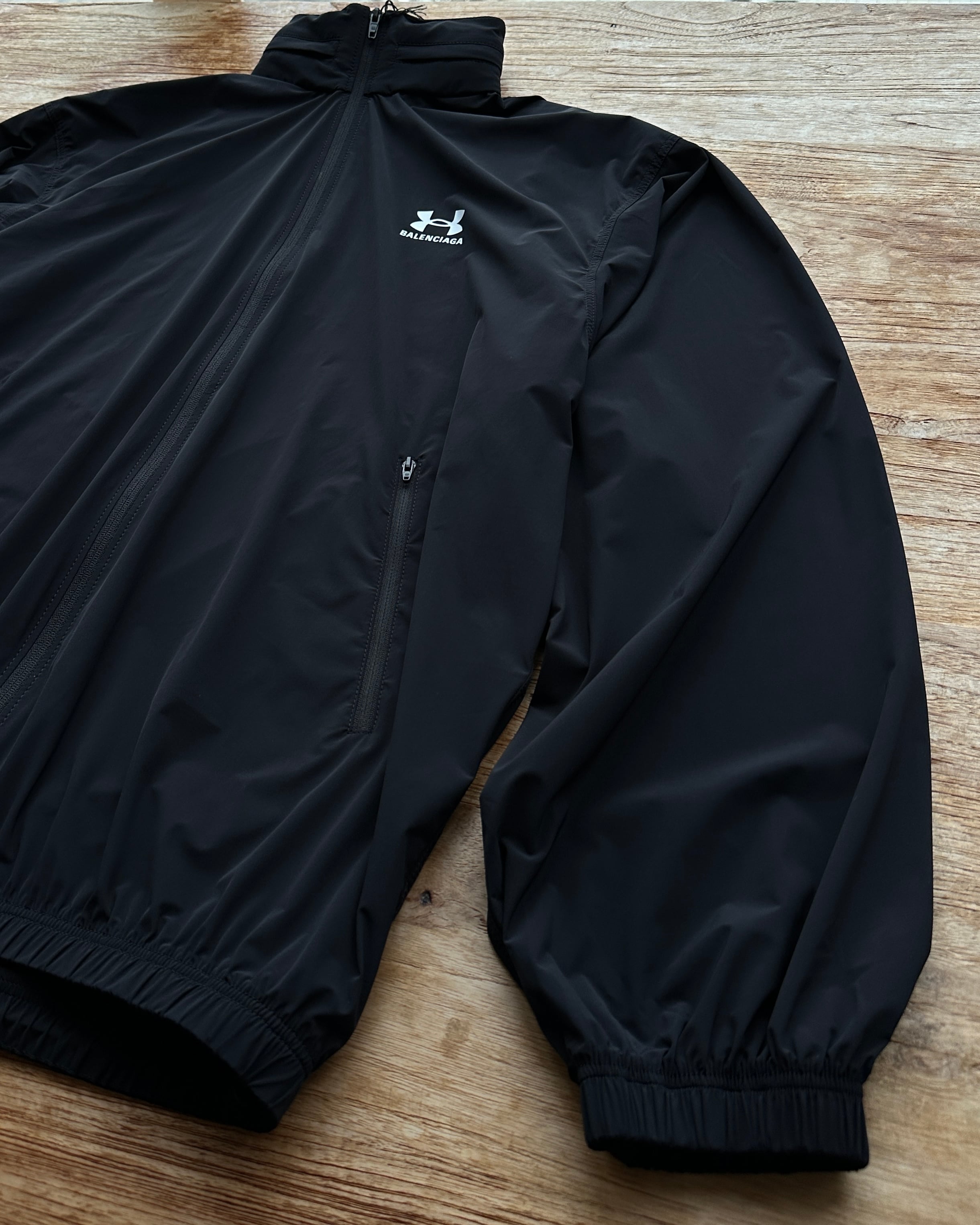 炒到上HK$16K㗎啦呢件2025春夏聯乘🙊⋯⋯原價HK$8K。好易襯㗎咋,全身oversized黑色就自動型晒㗎啦😎 價錢:HK$2,650 品牌:Balenciaga x Under Armour 尺碼:XS / 170/88A 尺寸:56cm (drop shoulder)|134cm (胸-zipped)|69cm (長) 註:全新未剪牌|85% polyamide + 15% elastane|意大利製 *二手產品難達全新狀態,耗損或歲月痕跡屬正常情況,較明顯/嚴重嘅問題會標明或影底,敬請見諒。 *進入付款程序後,請於10分鐘內完成付款,否則絲統會自動取消訂單。 逢星期四寄出|不設退換或退款|順豐運費到付|只寄香港不寄海外